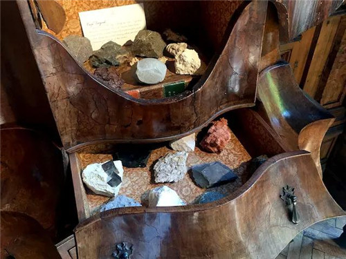 倫敦藝術家 Faye Toogood 在旅行途中收集來的各式各樣的石頭,被放在一個古老的、異形的裝飾柜內。