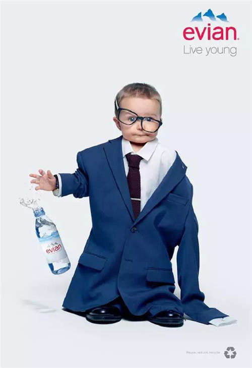 今年依云寶寶的核心創意在于 Oversize,即喝了依云水,就能像嬰兒一樣看待這個世界,在視覺呈現上,它們讓寶寶們穿上超大碼的成人時裝。如果說衣服代表了身份的話,這些穿著時裝造型的寶寶正是依云現在想要吸引的年輕顧客,而用 Evian 的全球營銷總監 Patricia Oliva 的話說,這些年輕人很可能并沒有看過當年的依云寶寶電視廣告。