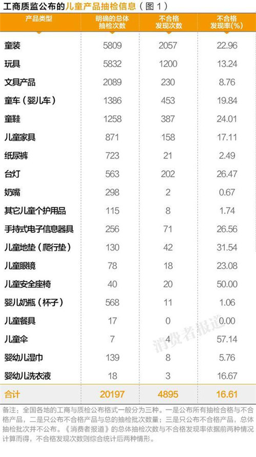 2017年5月,《消費者報道》通過梳理全國126個工商與質檢部門10年來公開的20197條兒童產品抽檢數據,作出不合格品牌黑榜警示,以及重點不合格產品類型的消費建議。