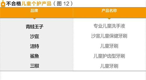 在兒童個護產品以及兒童傘的抽檢中,青蛙王子兒童洗手液以及天堂兒童傘均登上不合格榜單。