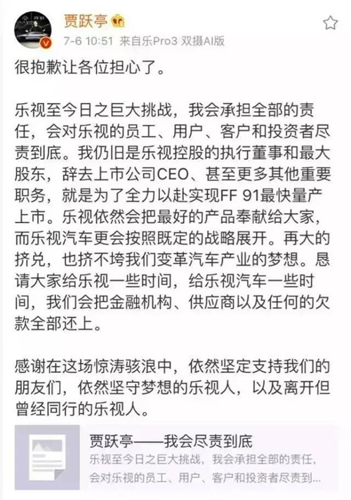 2、辭任之前賈躍亭剛發了道歉信,說會負責到底