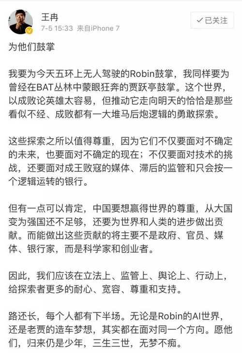 在今天上午,賈躍亭發表聲明,回應近期外界對樂視所面臨的資金困局及其對他本人的質疑。