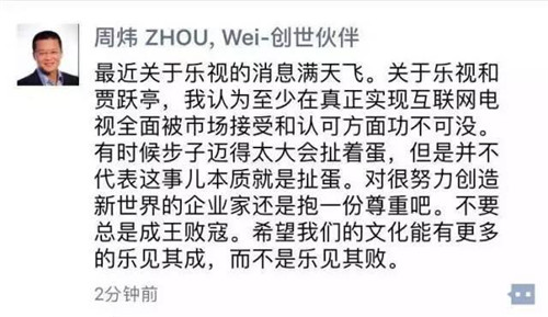 樂視控股傳播副總裁程時盛又在微信朋友圈發文對此事做了進一步澄清。