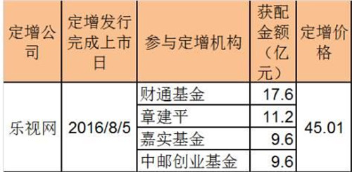 去年8月份初,樂視網發布定增公告,發行價45.01元,發行股份1.07億股,募資近48億元。以當前最新收盤價30.68元計算,浮虧31.84%。