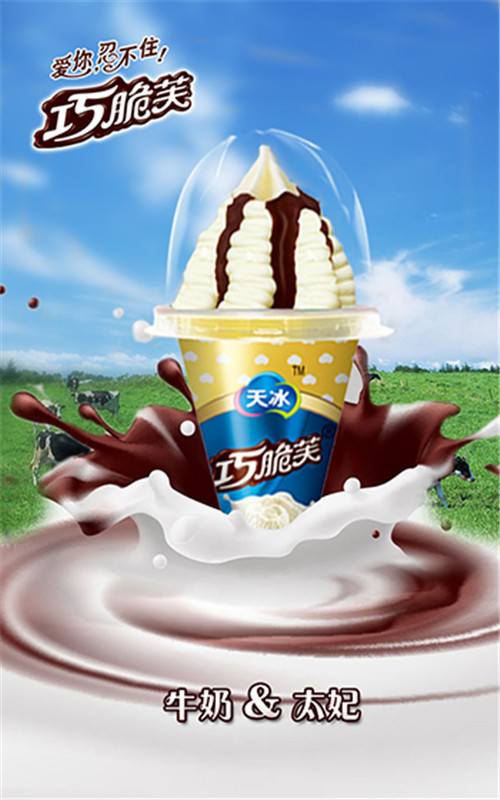 30多年專注于冰淇淋,天冰的積淀可想而知。巧脆芙這款產品的獨特之處還在于,外觀透明度很高,蓋子是礦泉水瓶材質,從三五米的高度摔下去不會摔爛。脆筒材質也上佳,無論消費者在哪吃到巧脆芙,吃到的都是是脆脆的感覺。巧脆芙里的巧克力則是由天冰自己精心打造研磨的。至于冰淇淋的奶源,則全部來自新西蘭的進口奶粉,酸奶和鮮奶,則采自河南名知的企業花花牛乳。