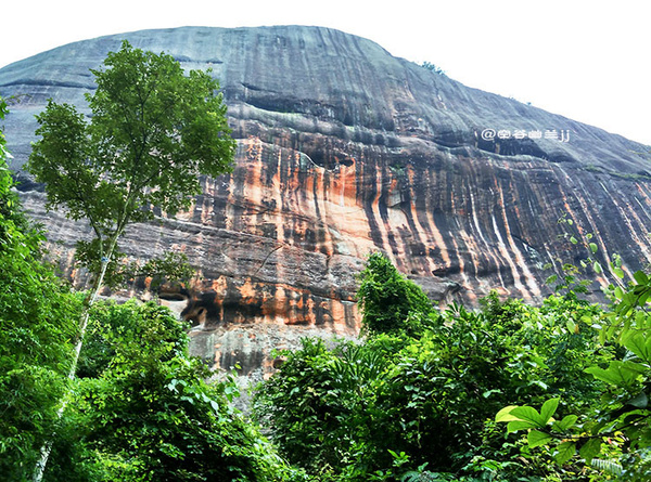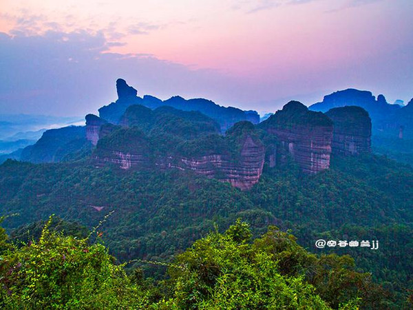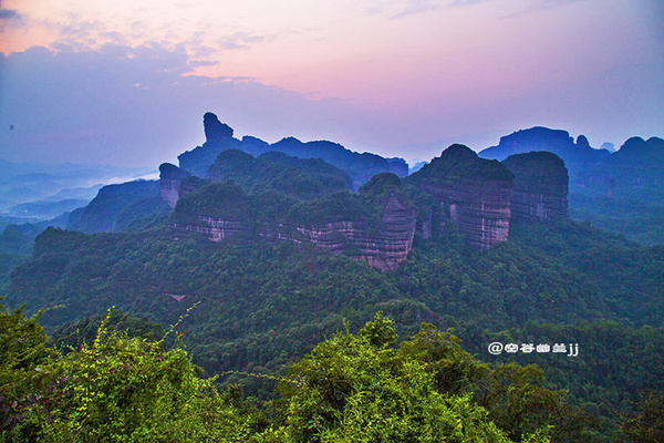 丹霞山之美,是那種把雄奇包裹在雋秀里的含蓄之美。它并不張揚,遠望像是一幅優美寧靜的水彩畫,顯示出一種優雅之美、從容之美和曠達之美。雖然它的山勢并不高,但它的許多懸崖峭壁,像刀削斧鑿,直指藍天,無數奇巖美洞,隱藏于山中,景色相當奇麗。