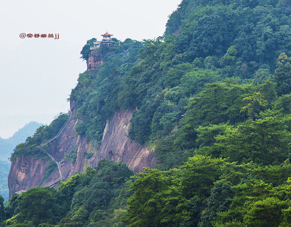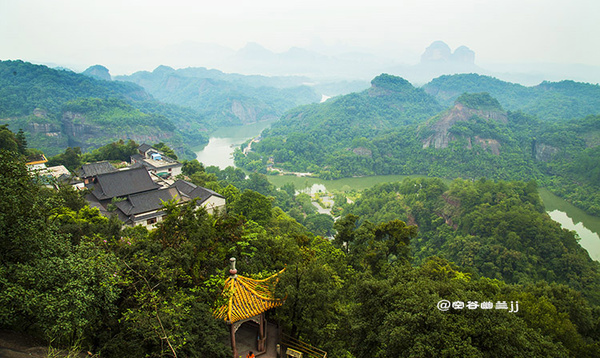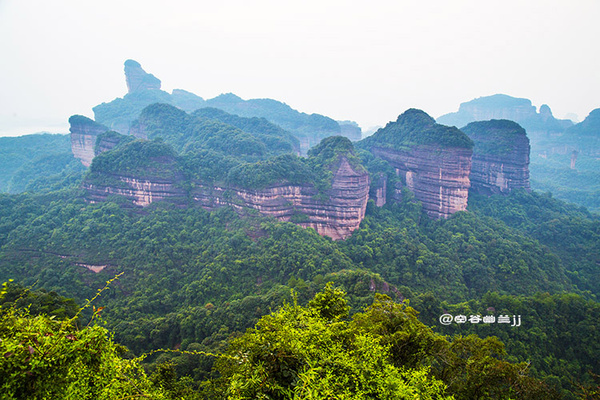 從山腳下乘索道上丹霞山主山之巔—寶珠峰,霧突突的天,在騰空而上的索道上縱目遙望置身于崇山峻嶺之中,不一會兒就到達寶珠峰頂,走到東部觀景臺(韶音亭)遠眺,群峰疊翠,連綿起伏,“無限風光在險峰”的詩情畫意,得到淋漓盡致的體現,讓人感受到世界名山的神奇魅力。