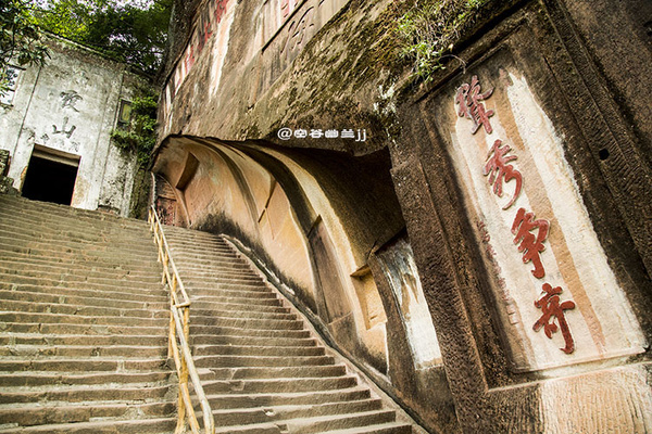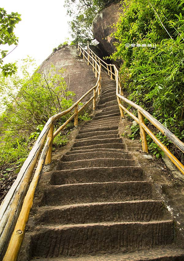 站在丹梯之上,能縱目如簇的翠峰、似練的錦江,卻因面壁而上,險峻無比。