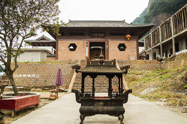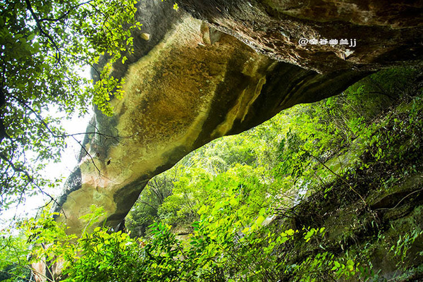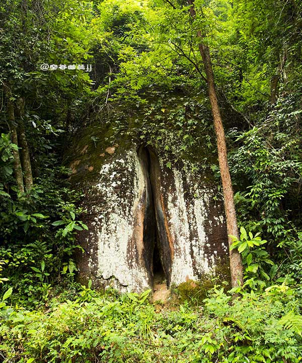 福音峽。這里懸崖相依,兩山并立,相距不過數尺,遠觀之則只見藍天一線自峽中露出,故名“一線天”。右邊一石,形如草鞋。據說:人立在峽中,面向南大喊,若有四聲回音,則此人將有福緣,故此峽名“福音峽”。