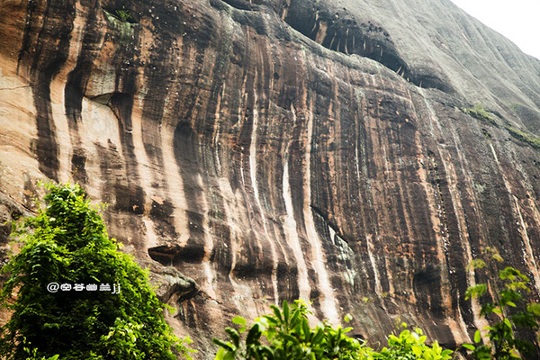 從通泰橋下來后,感覺時間還早就想去細美寨那邊看看是否可以上去。路過曬布石,諾大的山體,呈現出一道道的豎紋,好似染房在曬布。