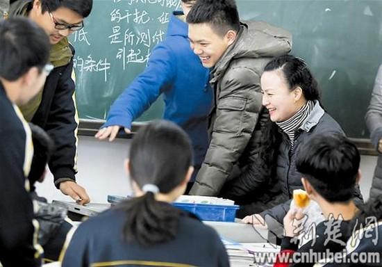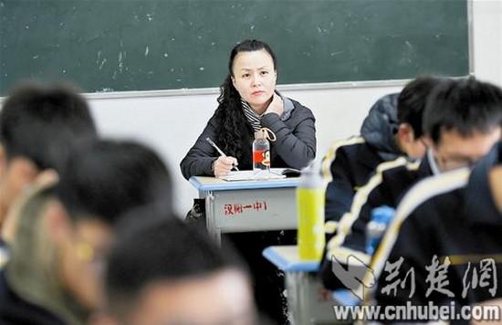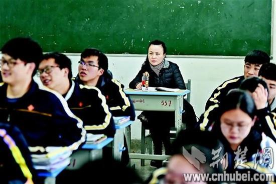 9日上午10時30分許,記者首先來到漢陽一中高二(15)班。這是一堂歷史課,老師講得神采飛揚,同學們聽得津津有味。教室最后一排坐著一位中年女士,時而認真聽講,時而埋頭記筆記。