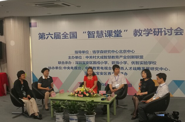 映象網訊 (記者 方圓 張娜)近日,鄭州市中原區華山路小學校長周蕓帶領部分業務領導和教師,赴深圳參加由錢學森研究中心北京中心、中關村大成智慧教育產業創新聯盟主辦的第六屆全國智慧課堂教學研討會。本次活動有來自北京、山東、河南、廣東、云南、四川、重慶等地的名師共同登臺,展示了“智慧課堂”的魅力,激發了教學熱情,分享了教育智慧。其中華山路小學的“動感課堂”教學展示受到了廣泛關注和一致好評,本次帶隊參加活動的校長周蕓,也成為本次活動中受到中央電視臺采訪的唯一嘉賓。