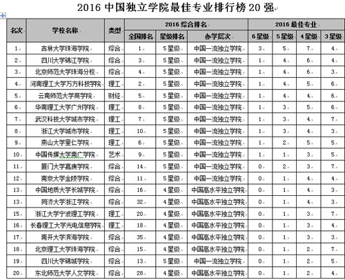 在最新2016中國各地區大學最佳專業排行榜中,北京市高校有74專業榮膺中國七星級專業,蟬聯第1,上海列第2,江蘇居第3,湖北列第4,湖南居第5。在2016中國民辦大學最佳專業排行榜中,武昌首義學院、文華學院、西安外事學院、山東英才學院和西安歐亞學院名列前5強。在2016中國獨立學院最佳專業排行榜中,吉林大學珠海學院、四川大學錦江學院、北京師范大學珠海分校、河南理工大學萬方科技學院和云南師范大學商學院名列前5強。