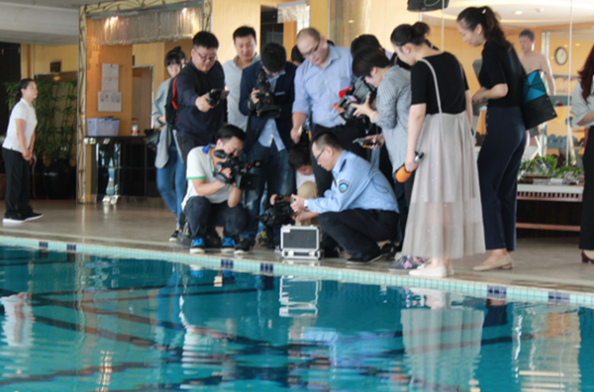 今天上午,記者跟隨相關部門將對此前檢測過的場館再次進行突擊臨檢,11時,對鄭州索菲特再次進行臨檢,發現水池中的游離性余氯值依然不合格,責令場館負責人限期整改。