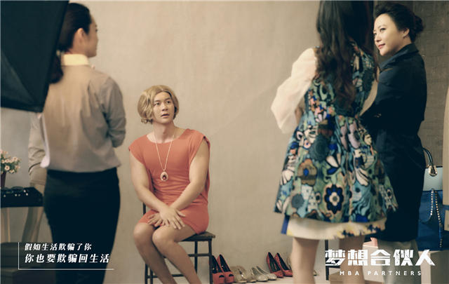 在電影《夢想合伙人》中,作為姚晨、唐嫣、郝蕾的創業合伙人,李晨除了成為三個女人“背后的男人”,創業路上出謀劃策外,更為事業大獻身,奉獻出女裝扮相。此次曝光的劇照中,頭頂假發身穿超短連衣裙的李晨,在姚晨、唐嫣、郝蕾三個“女強人”審視的目光下,羞澀地雙手交叉。而另一張劇照中,李晨更是一臉“認命接受”的接過姚晨親手遞上的粉紅女包。這組劇照也更讓人對他為何穿裙又拎包,還上演逆天“短裙殺”,沖破以往其他角色的尺度,做出這么大犧牲,充滿好奇。
