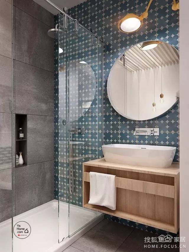 ▲ 補救妙招:后期多設光源,比如浴柜的鏡前燈。有的鏡前燈是自帶電源的,十分方便,或者直接安一個臺燈固定在墻面上,款式、顏色最好還是和衛生間的風格保持一致。也可將浴霸燈泡換成節能燈管。