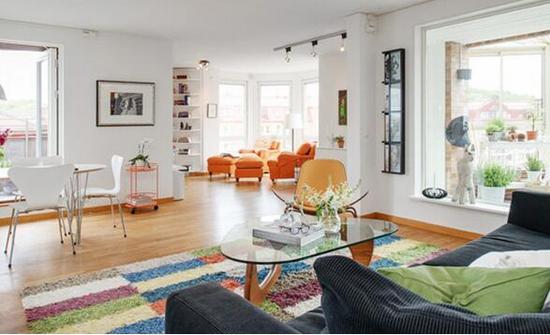 5.我們在一個整體的家居 環境中,我們面對的不單單是一個客廳,或者一個臥室這樣單獨的空間,而是在一個家中不停的在每個空間中穿梭,所以當你進入一個空間時,它所呈現的明度和色相會受到你剛離開空間的明度和色相的影響,即使你的目光已經離開,前面看到的色彩也不會立即從腦海中消失。比如說可能你的客廳比較暗,在一些臥室或者其他空間的裝飾上的明度和飽和度還有一些裝飾上做一些調整,讓從別的空間進入客廳時候的感覺是更輕松,更明快,這樣也是一種從視覺上提高的一種方法。再具體說可能臥室里的背景稍微深一點,你的客廳背景淺一點,進入客廳以后會有明亮的感覺,比如臥室里的色彩相對豐富飽和度高一些,客廳的整體色調相對淺一些,進入客廳后你的視覺會有一種放松,明快的感覺。