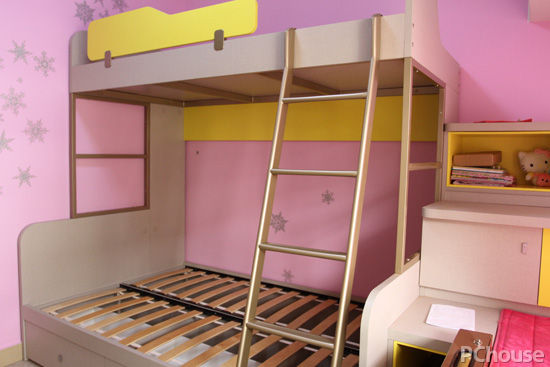 1、高低床的設置,滿足了丫丫想跟爸爸媽媽一起睡的小愿望。