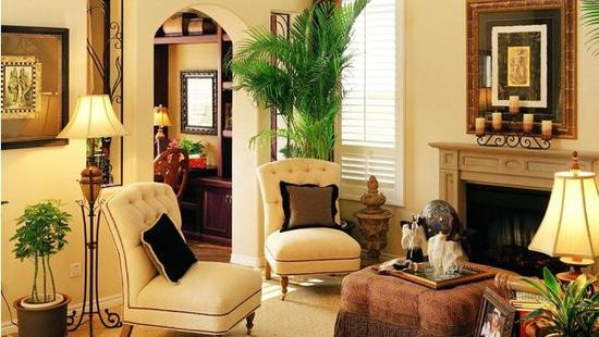 客廳是家中最常放置室內植物的空間,客廳配置植物,首先應著眼于裝飾美,數量不宜多,太多不僅雜亂,而且生長不好。植物的選擇還需注意大小搭配。