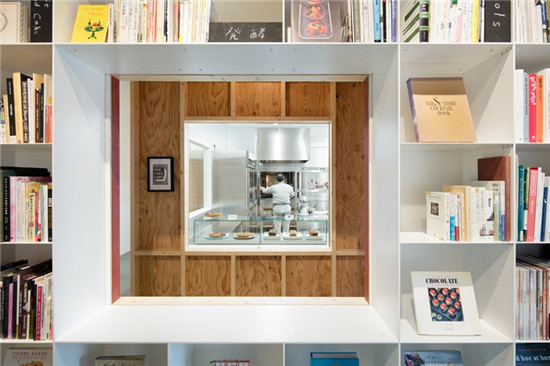 原文來源:http://www.designboom.com/architecture/schemata-hue-library-cake-shop-kitchen-tokyo-05-23-2016/