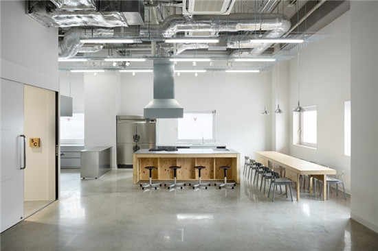 廚房也被安排在五樓,跟會議室在一起。出完飯以后,還可以選擇逛逛圖書館。將兩個不同功能的空間結合在一起,也是一種特有的解決方案。可以試著用烹飪的方式把知識轉化成行動。