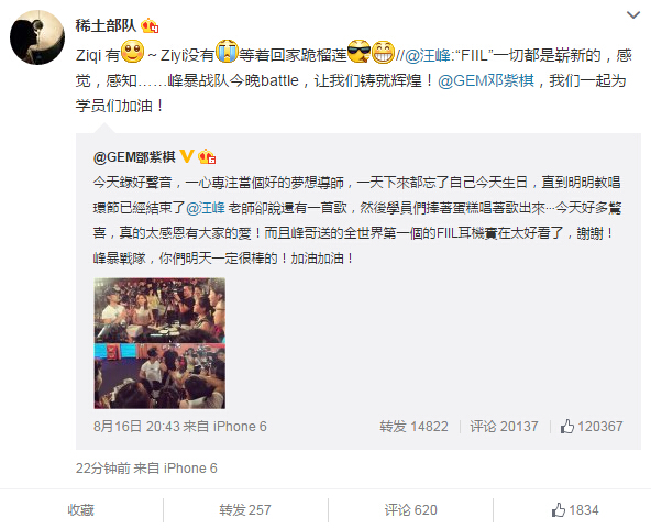 近日,一張章子怡發布會挺著“大肚”的照片引發網友熱議,雖然只是假扮孕婦,卻引來大波網友詢問何時準備要寶寶,可見網友對兩人感情生活的關注。8月16日,鄧紫棋在微博上曬出汪峰為其過生日的照片,17日中午,汪峰轉發此微博并稱要為學員們加油,17日下午,章子怡回復汪峰:“Ziqi有~Ziyi沒有,等著回家跪榴蓮。”