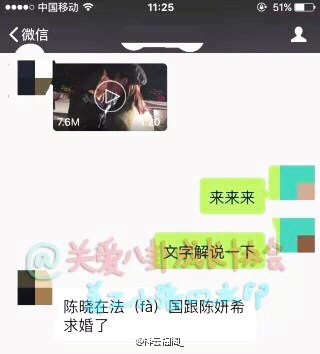 10月20日,@關愛八卦成長協會爆料陳曉和陳妍希很有可能好事將近,還稱陳曉托人在合肥買了個160萬的兩克拉鉆戒。據悉,10月6日,曾有網友爆料在西班牙偶遇陳妍希陳曉,當時女方手上戴著一個大戒指。而在10月18日,亦有網友爆料稱陳曉向陳妍希求婚,并一同發布了一段二人擁吻的視頻。