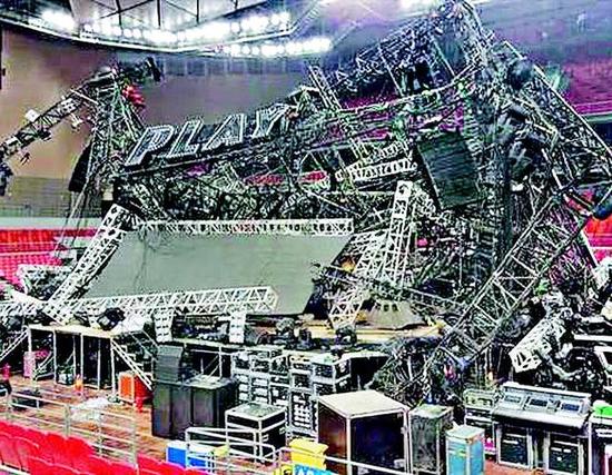 據臺灣媒體報道,蔡依林(Jolin)本周六(31日)預定在廣西南寧舉行“蔡依林2015 PLAY世界巡回演唱會”,現場舞臺近日已幾乎準備搭建完成,不料,該舞臺29日下午5點多,多條大型鋼鐵結構的燈架突然倒塌砸下來,現場一片混亂,造成1名工人意外死亡,且有13名工人受傷。Jolin人還沒到現場,本來預計今日(30日)抵達,若是在演唱會當天才發生倒塌,后果更是不堪設想。經紀人表示正在了解狀況,是否取消演唱會,仍要看舞臺修復狀況。