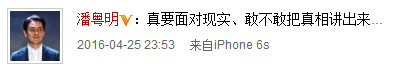 近日,董潔帶著兒子頂頂上真人秀的節目在網絡熱播,單親媽媽和兒子的溫馨有愛互動感動了很多人,董潔母子也圈了很多粉,但今天上午,潘粵明突然發微博稱:“真要面對現實、敢不敢把真相講出來…”這是什么情況?難道這曾經恩愛、后來互撕的昔日情侶,要再度開撕?