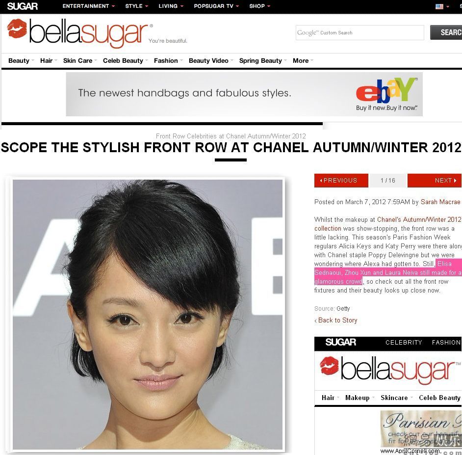 澳大利亞bellasugar網站評選的Chanel頭排嘉賓妝容集錦