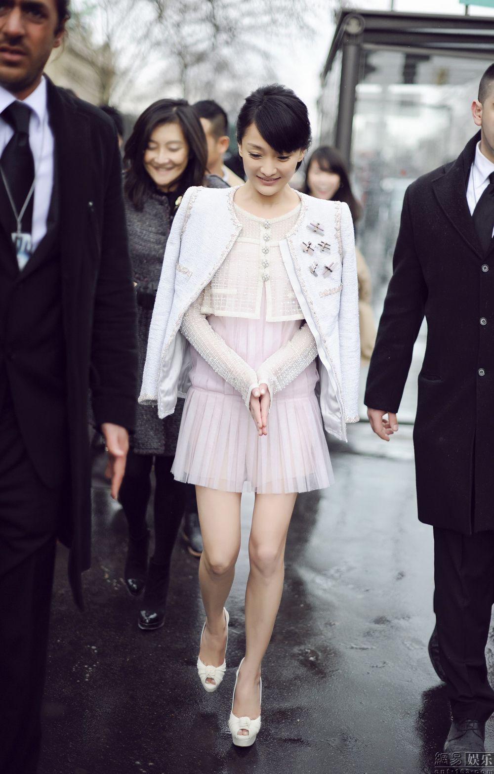 網易娛樂3月12日報道(文/小易) 日前,堪稱全球時尚潮流風向標的巴黎時裝周已經正式落下帷幕。但盛典結束,余溫猶在。近日,華裔女星周迅在時裝周上的一張疑似夢露走光照在網絡上瘋傳。照片中,周迅身著香奈兒頂級手工定制服飾,珍珠薄紗短外套搭配短裙的清新造型讓人眼前一亮。其中,微風掃過,周迅的裙擺飛揚,而她輕輕用手撫住裙擺并擺出搞怪神情堪稱神來之筆。