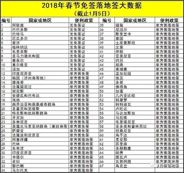 馬上就要春節了,不準備出國轉轉,來場說走就走的旅行嗎?攜程8日發布的《2018年免簽落地簽大數據報告》顯示,根據外交、領事部門發布的最新信息,截至2018年1月5日,持普通護照中國公民可以免簽、落地簽前往的國家和地區增加到67個。