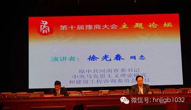 原中共河南省委書記、中央馬克思主義理論研究和建設工程咨詢委員會主任徐光春做重要講話,主要對新豫商十年進行回望,對新常態下經濟的發展特點進行了深入分析,指出企業經營在新常態下經濟發展的影響,對企業家發展企業提出建議,提醒豫商們要發展,就要聯合 ,要團結,要互助。