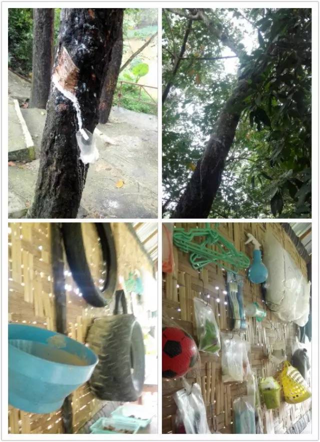 泰國從1991年起即成為世界最大的天然橡膠生產國和出口國。在這里隨處可見大片大片的橡膠園,據導游講,到了收獲季節,天剛蒙蒙亮的時候,割膠工們便開始上山割膠了,太陽一出來,膠汁就不流了。膠林里萬籟寂靜,耳邊聽得嚓嚓的割膠聲,乳白的乳膠順著割線流進碗里。我們常說:“一分耕耘、一分收獲!”膠農是真的的不容易啊!