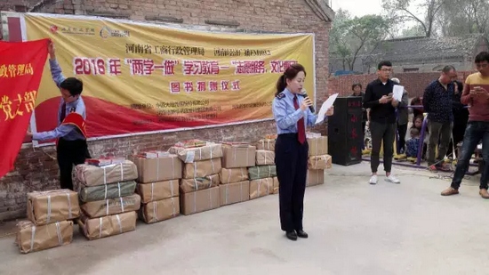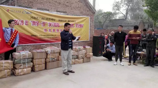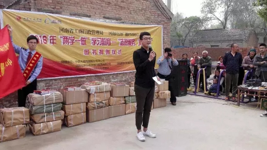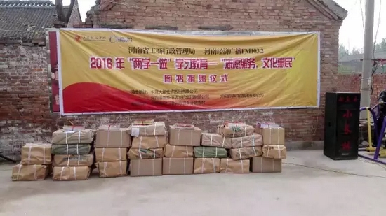 今天,河南省工商局聯(lián)合河南經(jīng)濟(jì)廣播FM1032開展“兩學(xué)一做”志愿服務(wù)文化惠民圖書捐贈(zèng)活動(dòng),來到封丘縣荊隆宮鄉(xiāng)孫蔡寨村。