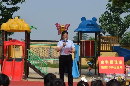 縣里領導和《知道不知道》主持人鵬哥紛紛上臺致辭,金利福珠寶和中鐵七局集團電務工程有限公司也進行了圖書的捐贈!