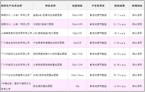 上述產品均檢出含有禁用物質氯倍他索丙酸酯。值得注意的是,氯倍他索丙酸酯早已在2007年版的《化妝品衛生規范》中被規定其為化妝品禁用物質。