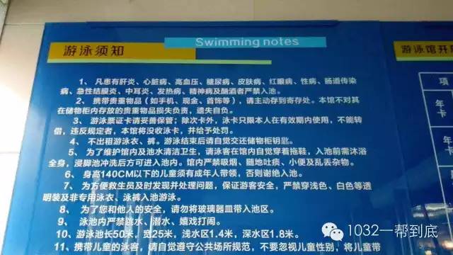 記者在游泳館大廳到墻壁上看到,提示牌上寫著11條游泳須知,第2條顯示:“攜帶貴重物品(如手機、現金、首飾等),請主動到寄存處。本館不對其在儲物柜內存放到貴重物品損失負責,遺失自負。”