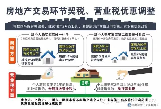 財政部19日發布《關于調整房地產交易環節契稅、營業稅優惠政策的通知》,自今天(2月22日)起,將首套房面積為140平方米以上的,從3%減按1.5%的稅率征收契稅;二套房契稅則從3%降為1%~2%不等。