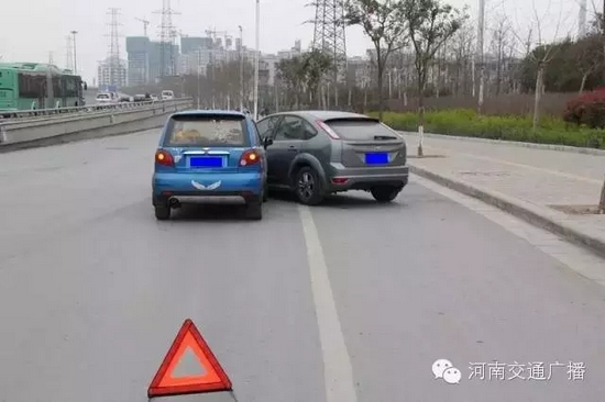 3、為避免發生次生交通事故,以及在處理事故時被當成違法停車誤抓拍,請在事故處理完畢之前,全程開啟雙閃燈,放置三角警示牌;