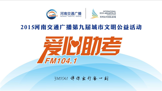 2015河南交通廣播全省“愛心送考”華美升級為 “愛心助考”,除了常規車友領取愛心助考、家有考生車貼外,領取時間和地點后期會公布,敬請鎖定FM104.1。