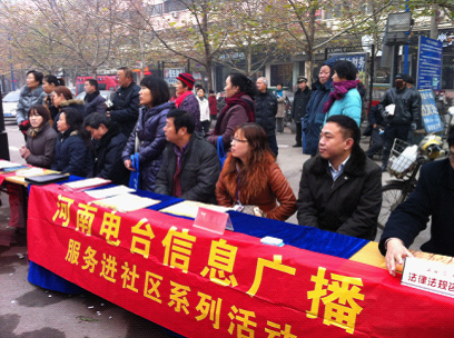 2011年12月2日(全國(guó)法制宣傳日前夕)河南人民廣播電臺(tái)信息廣播聯(lián)合建中街道辦事處在碧波園舉行了法制服務(wù)進(jìn)社區(qū)活動(dòng)。活動(dòng)針對(duì)人民群眾關(guān)心的生活問(wèn)題、需要法治解決的現(xiàn)實(shí)問(wèn)題,從情理、道理、法理以及憲法、法律、法規(guī)等等方面給予指導(dǎo),通過(guò)答問(wèn)題之疑、解法律之惑,真正為人民群眾排憂(yōu)解難。使法制宣傳教育深入人心,認(rèn)同法治精神,接受法治理念,共創(chuàng)和諧社會(huì)。