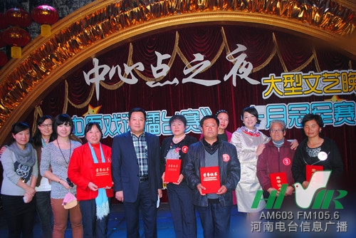 昨天晚上,河南人民廣播電臺2012中心點杯《中原戲迷擂臺賽》10月月冠軍賽在開封杞縣舉行。本次月冠軍賽由河南人民廣播電臺、河南省戲劇家協會、河南省戲迷協會聯合主辦,河南電臺信息廣播、杞縣中心點審美造型設計、河南藝之道文化傳播有限公司承辦,河南電臺經濟廣播、農村廣播協辦。