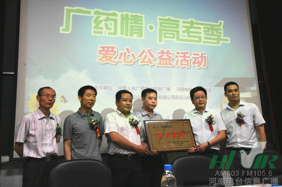 6月3號,河南電臺信息廣播聯合河南電視臺第九頻道、廣州白云山何濟公制藥廠,在鄭州大學共同舉辦了以“愛心助高考 迎接新人生”為主題的“廣藥情 高考季”系列愛心公益活動。