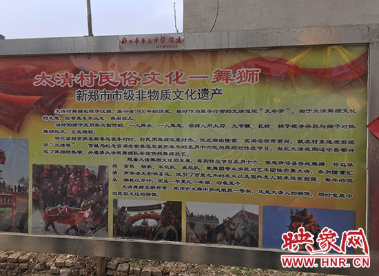據了解,太清村的舞獅已被新鄭市定為非物質文化遺產,目前,正在申請鄭州市一級的非物質文化遺產。這一次大規模的舞獅表演,也是為申報鄭州市非物質文化遺產熱身。