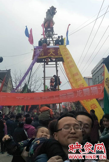 新鄭市觀音寺鎮太清村,新鄭、長葛、禹州的三縣交界處。3月3日下午15時許,太清村的街上人山人海,水泄不通。各條街道上鑼鼓喧天,熱鬧非凡。多個舞獅團隊開始在高高樹起的架子上表演,地面上各種各樣的民間表演爭奇斗艷。