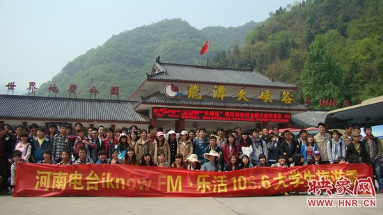 這個周末由河南電臺iknowFM·樂活106.6大學生旅游季活動組織的幾百名大學學子去國家AAAAA級景區龍潭大峽谷瘋狂的“嗨“了一把。