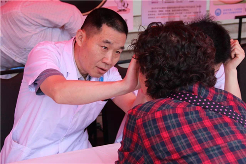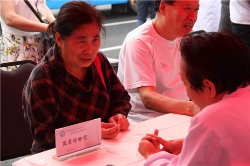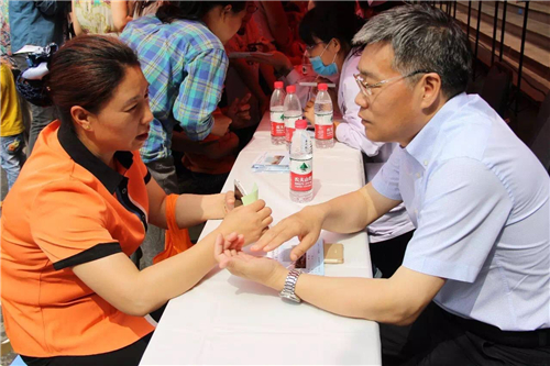 下了直播車后,孫院長又來到義診區,親自為患者診治病情。