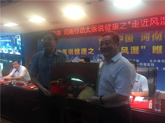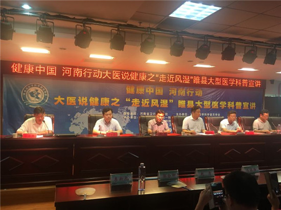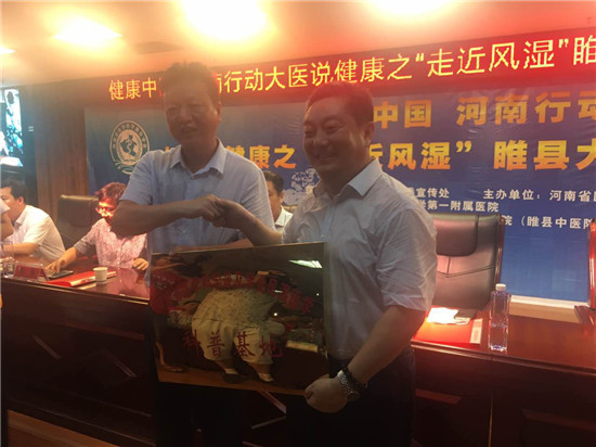 07月23日上午,由河南省衛(wèi)計委宣傳處指導(dǎo),河南省醫(yī)學(xué)科普學(xué)會、醫(yī)藥衛(wèi)生報主辦的“健康中國 河南行動 大醫(yī)說健康”開啟第二站:“走進(jìn)風(fēng)濕”睢縣大型醫(yī)學(xué)科普宣講義診活動。