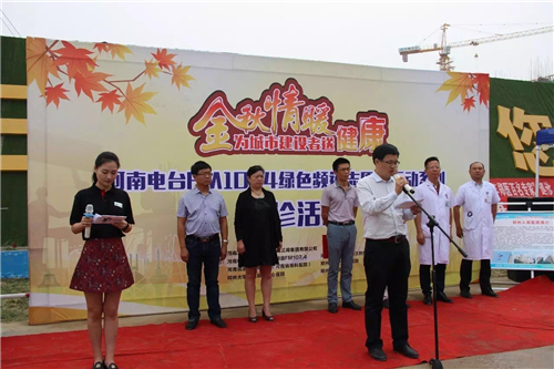 今天(9月24日)上午,河南電臺綠色頻道“金秋情暖——為城市建設者送健康”大型系列義診活動,走進中建三局鄭州航空港建筑工地,為建筑工人們免費檢查身體,送去健康。